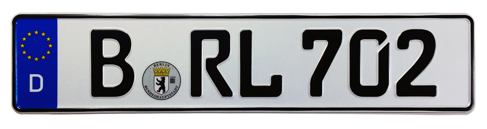 We manufacture 2 plates with each number configuration, one front plate and one rear plate. Thus, each front or rear German license plate will have a unique number. The City code (B) and RL letters will be the same as pictured; only the last digits will be different. This ensures no duplicates are issued. The back of the license plate has a Z Plates Certificate of Authenticity registration seal with a unique number.
